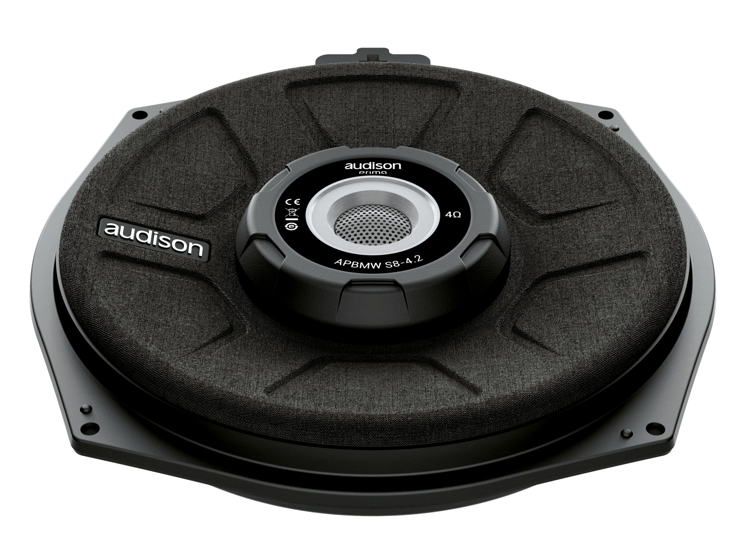 The 200 mm (8 in.) APBMW S subwoofers allow a direct replacement of the OEM speakers underneath the front seats, making the most of the factory acoustic load and generating deep and crisp low frequencies. The Neodymium magnet allows for greater power and control than ferrite while maintaining the depth of installation unaltered.