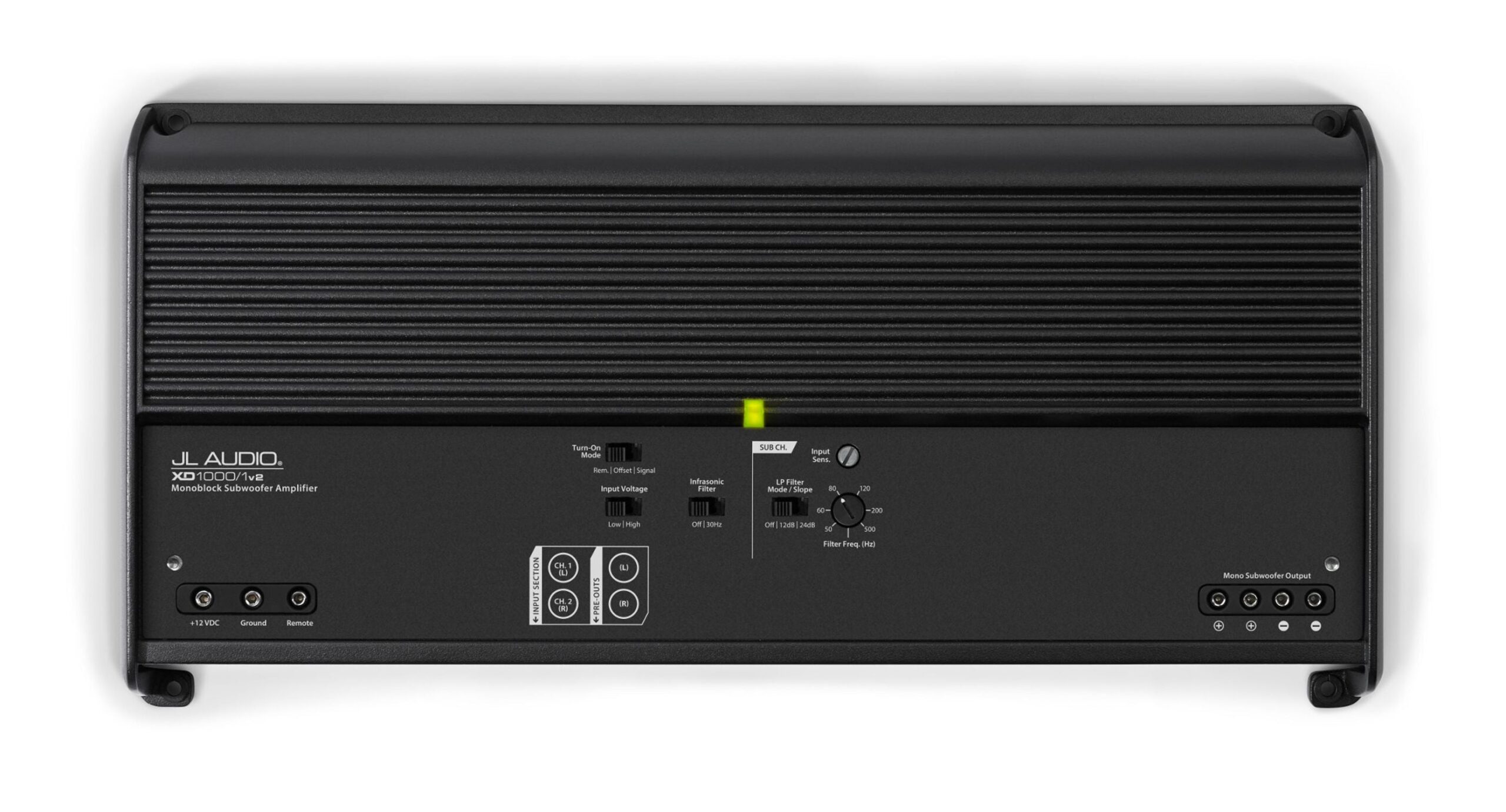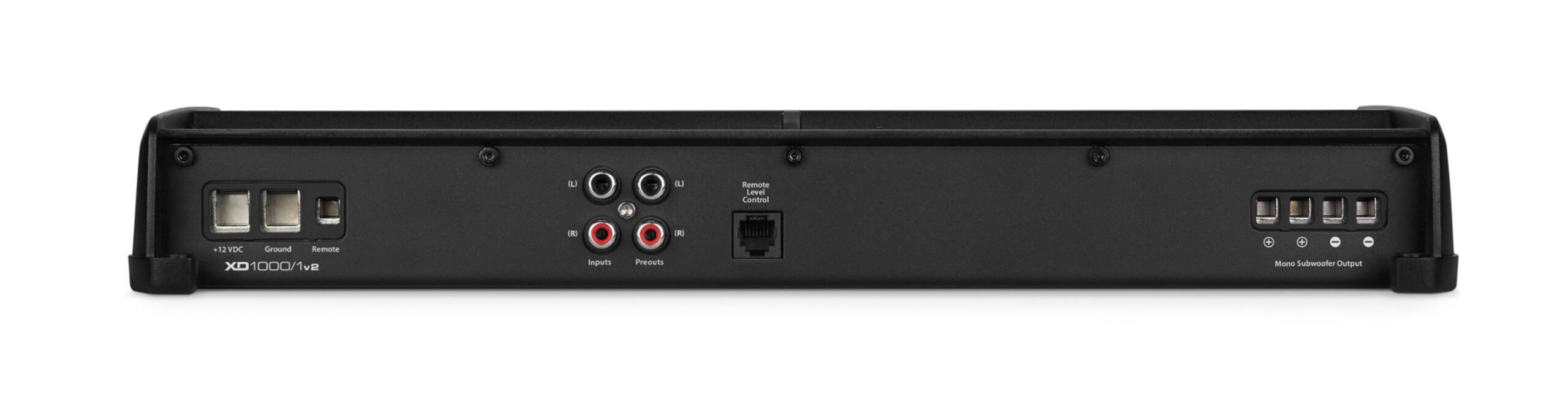 Monoblock Class D Subwoofer Amplifier, 1000 W x 1 @ 2 Ω / 600 W x 1 @ 4 Ω – 14.4V. This potent mono block subwoofer amplifier employs our high-speed NexD™ switching design to achieve unprecedented efficiency and amazing power output in a very compact chassis. The XD1000/1v2 is capable of delivering 1000 W of continuous power into a 2 ohm load (14.4V, 1% THD), making it a great choice to drive higher power subwoofer systems. Designed specifically for subwoofer applications, the XD1000/1 includes a variable slope low-pass filter with continuously variable cutoff frequency selection from 50-500 Hz and a defeatable infrasonic filter (30 Hz, 24 dB/oct.).